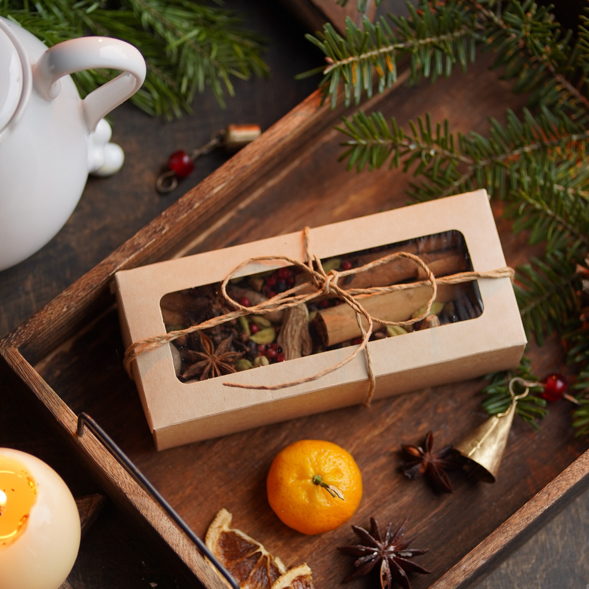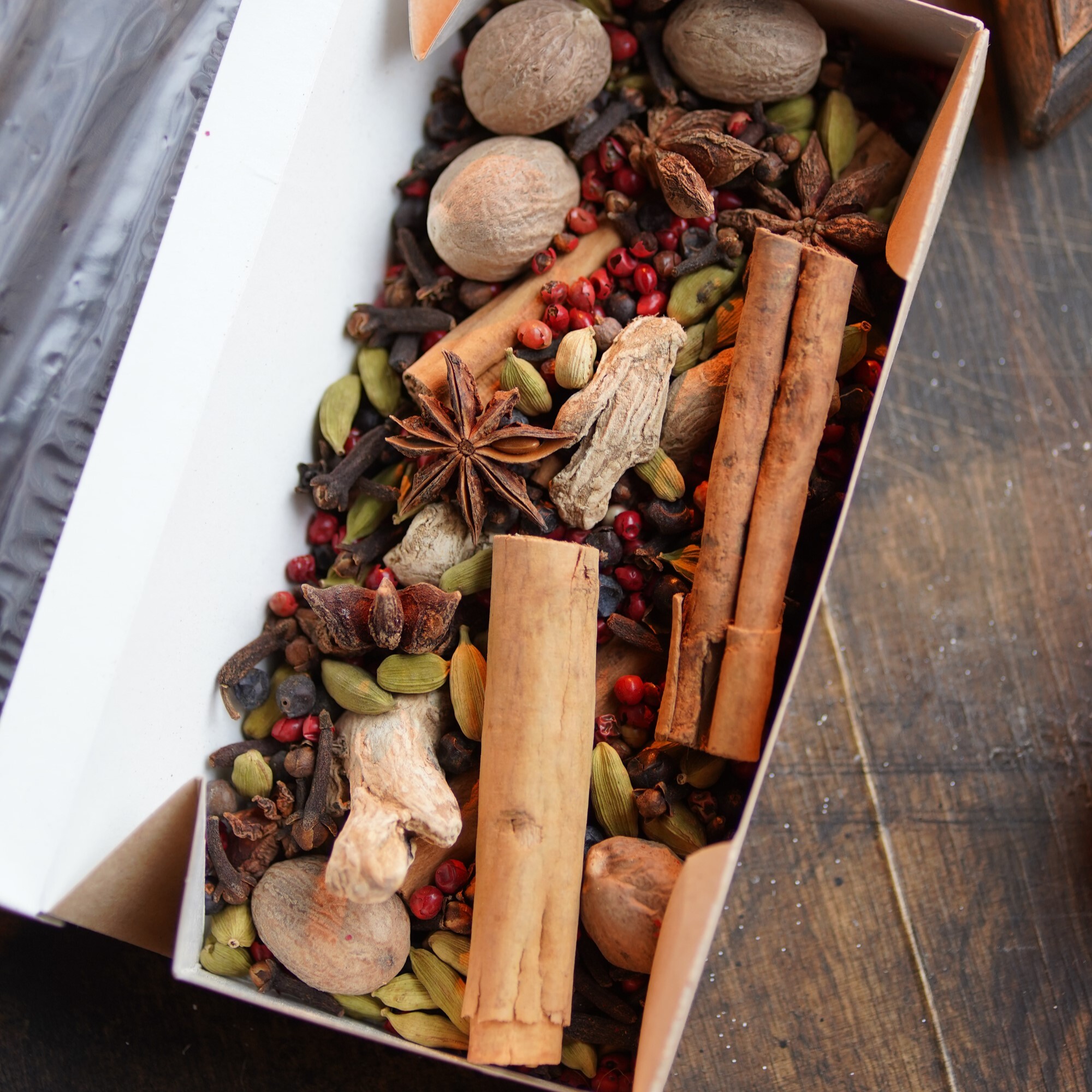 Состав: бадьян, кардамон, имбирь, натуральная корица, гвоздика, розовый перец, можжевеловые ягоды, мускатный орех